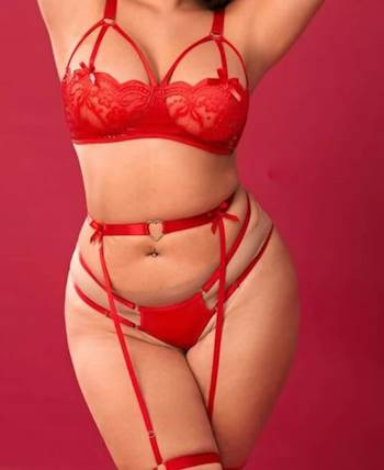 Red lace and black velvet set