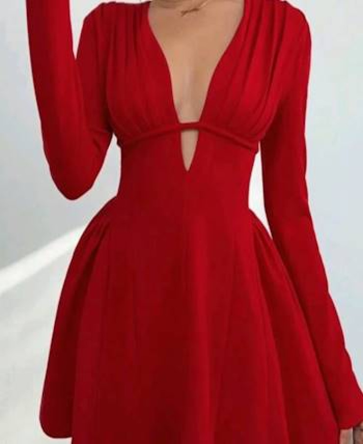 Red flared skirt dress